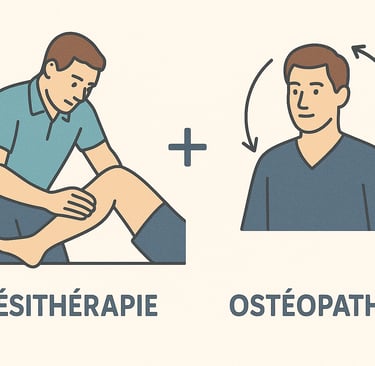 Au-delà de leurs spécificités, il est important de souligner que kinésithérapie et ostéopathie ne sont pas des pratiques concurrentes mais peuvent être grandement complémentaires. Par exemple, après une blessure importante, des séances de kinésithérapie pour la rééducation fonctionnelle de la zone lésée peuvent être judicieusement complétées par une ou plusieurs consultations d'ostéopathie. Celles-ci viseront à rééquilibrer les compensations que le corps a pu mettre en place suite au traumatisme et à restaurer une harmonie globale.